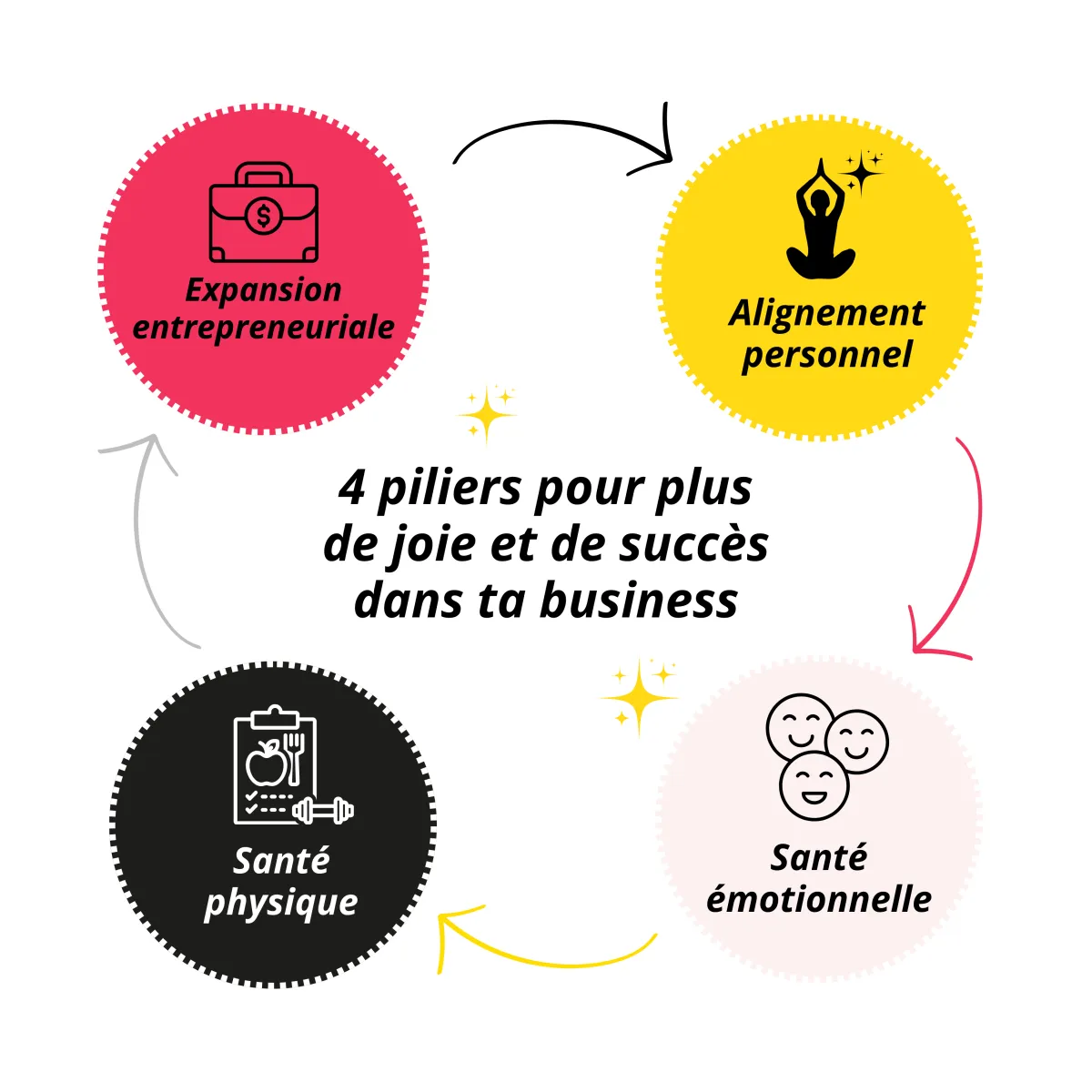 Pendant cette immersion, nous allons travailler les 4 piliers essentiels d’une croissance entrepreneuriale durable.
