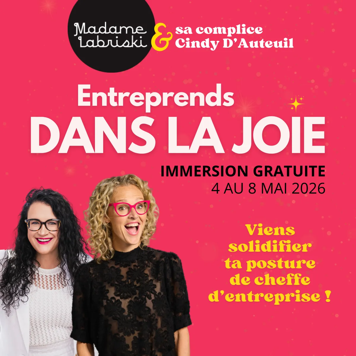 Pour celles qui sentiront que c’est exactement ce dont elles ont besoin, nous ouvrirons les portes de: Entreprends dans la joie — Cohorte 2 Premium